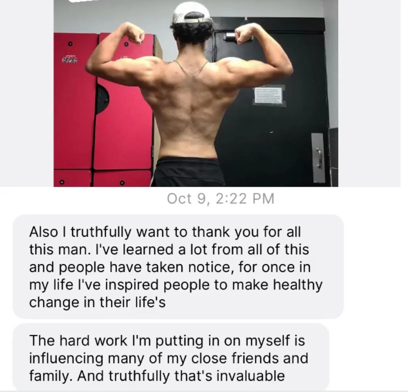I gained invaluable knowledge about my own body and most importantly healthy eating habits. You helped me objectively view my physique over the last few years. Additionally, quantifying tangible results through the progress pictures we took over the years was highly rewarding.